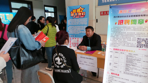 据悉,计信学院在2015下半学年已经举办了航信、亚信、惠普、成都民航二所和搜房网等公司的五场专场招聘会,部分优秀学生已如愿签约成功。此次招聘会为解决学院部分准毕业生还未选定意向单位、考研之后选择就业的问题,学院邀请中国民航信息网络股份有限公司、百度糯米重庆服务商、重庆小蚕豆科技有限公司以及被重庆媒体称为“业界最有良心企业”的重庆鸿巨网络科技有限公司等近40家重庆知名企业参与,到场求职学生人数达270人,招聘大厅内气氛火爆,人头攒动,多家用人单位的展位前都排满了投递简历和前来咨询的校内外求职者。