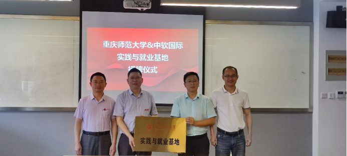 院长魏延,与中软国际教育科技集团西南区副总经理曾鹏,签订了“实践与就业基地”协议,并向中软国际授予“实践与就业基地”牌匾。