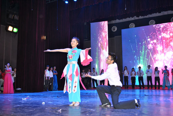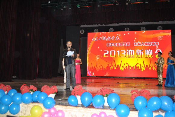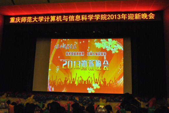 “e启二进制青春”2013迎新晚会在校友会堂隆重举行。校学生处处长张明志老师、校党委宣传部张敬老师、院党总支书记刘军、院长李月臣等领导莅临晚会现场。学院各系教师,办公室,教科办,学工办,各兄弟学院代表与哔咔漫画