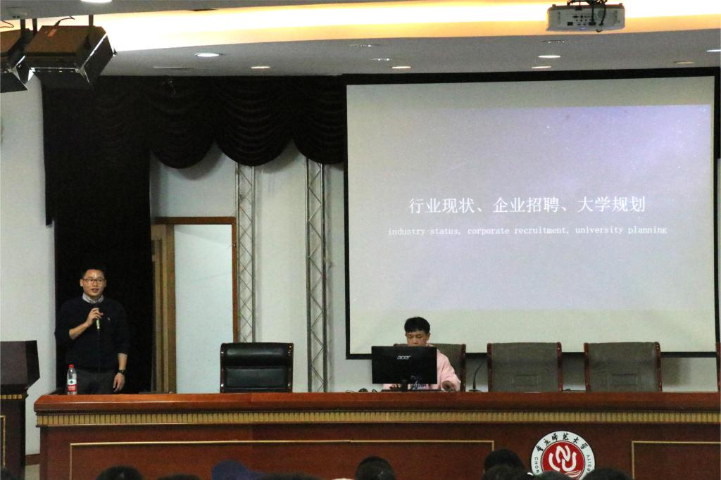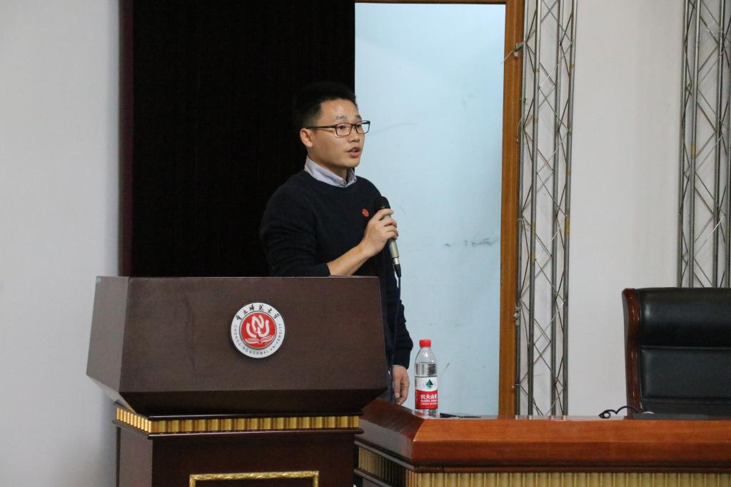 在凯撒报告厅进行“从宏观到微观”校友宣讲会。此次校友论坛由学院团委书记学工办主任钟华主持,邀请到已毕业的优秀校友冯李磊和梁俊杰。